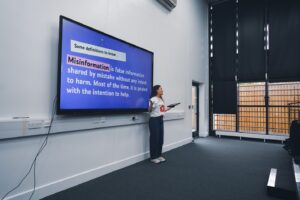 60 students from years 9, 10 and 11 gathered in the new Maths school block to take part in interactive sessions focused on spotting misinformation, understanding online influence, and building positive digital communities. The energy in the ‘Hawkins’ room was electric as students engaged with trainers, asked insightful questions, and collaborated on activities designed to sharpen their critical thinking and media literacy. Local MP Wes Streeting then spoke to the students about how misinformation online can be a threat to our local and national democracy, and the importance of checking sources and establishing objective truth.